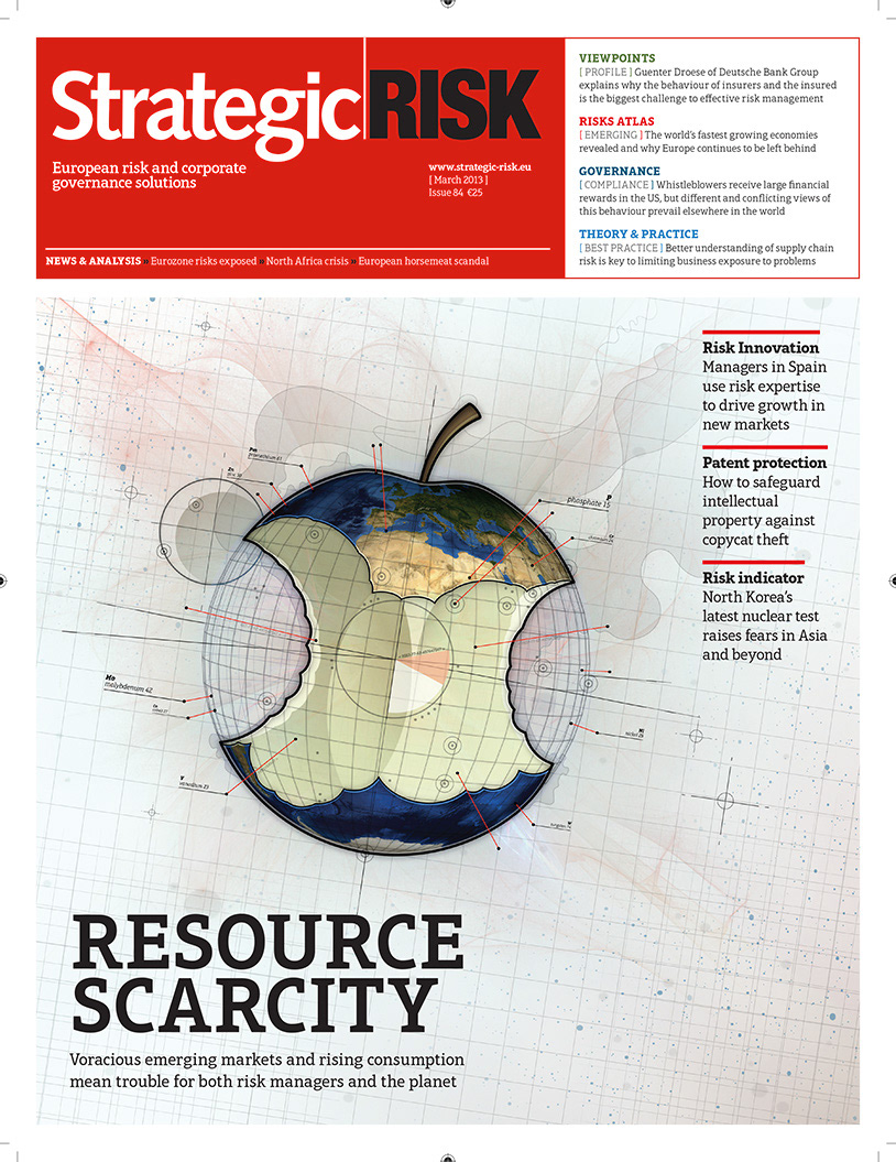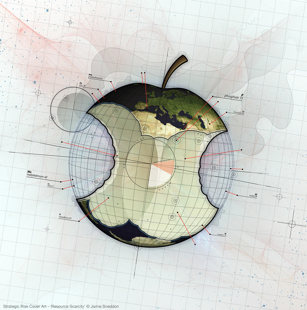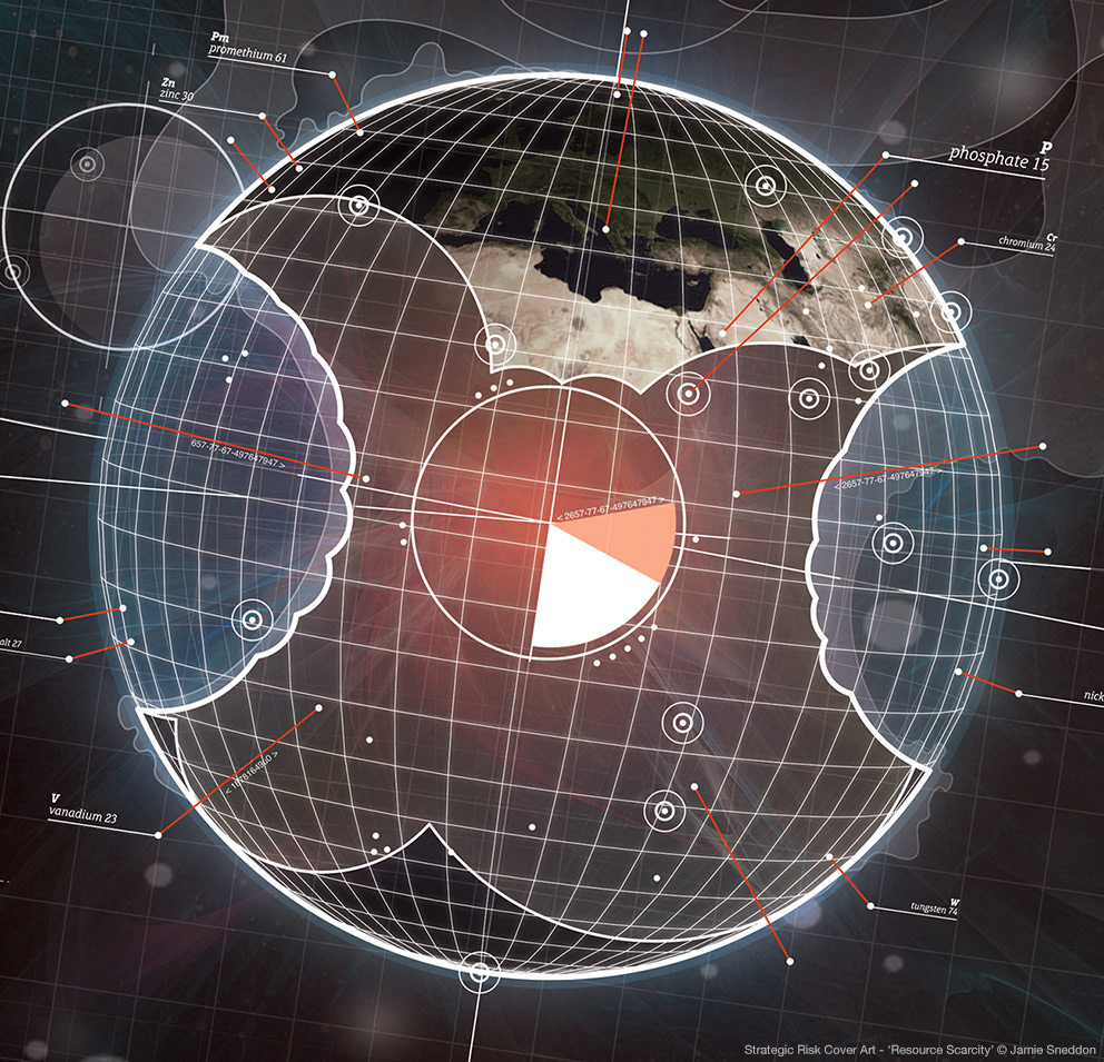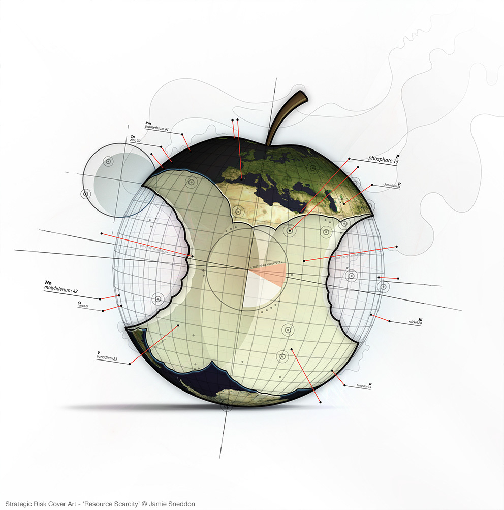 A graphic solution for depicting the limited resources of planet Earth. Used as cover art for Strategic Risk magazine..